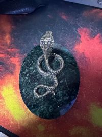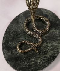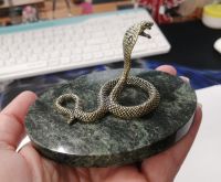 Статуэтка "Королевская кобра" на подставке из шабровского змеевика размером 10х7х5,5 см и весом 180 г.