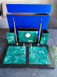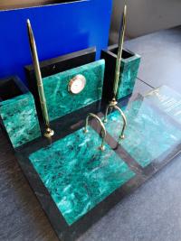 Письменные наборы из змеевика имеют стильный дизайн и вдобавок они сделаны из натуральных и экологичных материалов.