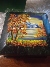 Шкатулка змеевик рисунок осень 10х10х6,5 см размером 10х10х6,5 см и весом 890 г.
