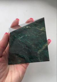 Пирамида выполнена вручную из камня змеевик, имеет размеры 9х9 см и весит 580 г.