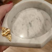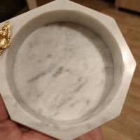 Пепельница из белого мрамора с накладкой размером 12,5х10,5х3 см и весом 400 г.