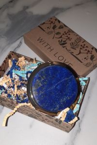 Зеркальце из афганского лазурита круглое цвет золото размером 7х7х1 см и весом 80 г.