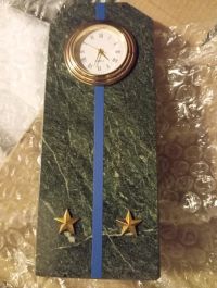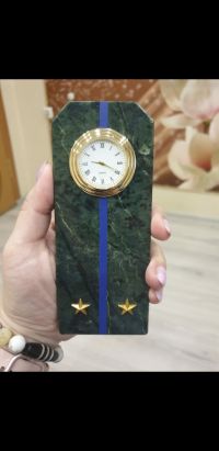 Часы "Погон лейтенант ФСБ, ФСО" камень змеевик размером 6х4х15 см и весом 300 г.
