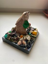 Сувенир "Кролик с морковкой" змеевик размером 8,5х7,5х7,5 см и весом 320 г.