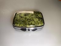 Таблетница на 2 отделения камень змеевик цвет серебро размером 5,5х4,7х1,7 см и весом 50 г.