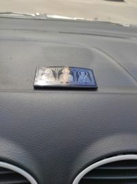 Качество. Есть двухсторонний скотч.Хорошая иконка в машину ,выглядит достойно