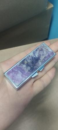 Таблетница на 3 отделения камень флюорит цвет серебро размером 8,5х3,5х1,5 см и весом 60 г.