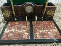 Письменный набор "Щит" из камня лемезит размером часы 30х8х19 см, календарь 27,5х14,5х6 см и весом 4000 г.