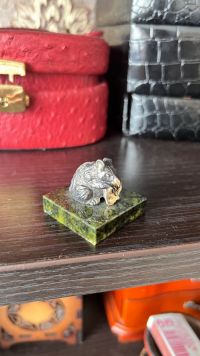 Сувенир "Крыса с сыром" из бронзы и змеевика размером 3,5х3,5х3,5 см и весом 70 г.