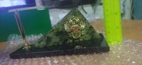 Визитница настольная с гербом России змеевик размером 18,5х9х8 см и весом 550 г.