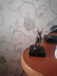 Сувенирная статуэтка "Козел на дыбах" бронза камень размером 3х3х6 см и весом 60 г.