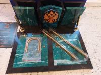 Настольный набор "Галант" из змеевика с гербом РФ размером центральная часть 26х8х10 см, подставка под календарь 20х15х3 см и весом 3800 г.