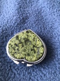 Оооочень понравилась, дизайн и исполнение продуманные и красивые. Камень красивой зеленой расцветки имеет небольшую выемку, но она зашлифована и впечатление не портит. Понравилось все: и таблетница, и упаковка в красный замшевый мешочек и точная доставка! Спасибо большое!Отзыв