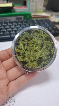 Зеркало карманное двухстороннее из змеевика цвет серебро размером 7х7х1 см и весом 80 г.