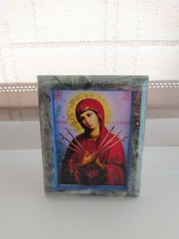 Икона настольная "Семистрельная" камень змеевик 9х7,2х3 см размером 9х7,2х3 см и весом 90 г.