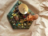 Подсвечник "Белка с орехом" из змеевика размером 7х8х5 см и весом 200 г.