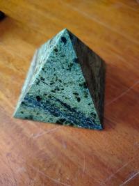 Пирамида изготовлена вручную из камня змеевик, имеет размеры 7х7 см и весит 290 г.