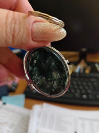 Складное зеркало брелок из серафинита овальное размером 5х4х1 см и весом 40 г.