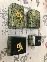 Небольшая, но очень красивая шкатулка из натурального камня. Тяжёленькая. Внутри без отделки, но мне и не надо. Отлично отполирована и снаружи и внутри, так что все узоры змеевика придают ей неповторимый вид. Небольшую вставку на дно сделаю сам из велюра.Изделия выполнены качественно