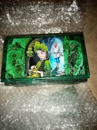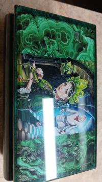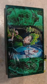 Шкатулка "Хозяйка медной горы и Данила" из змеевика 18х10х8,5 см размером внешний размер 18х10х8,5 см, внутренний размер 16х7х4 см и весом 1970 г.