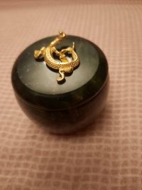 Шкатулка круглая с ящерицей черный змеевик 6х6х5,5 см размером 6х6х5,5 см и весом 250 г.