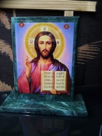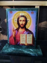 Икона "Спаситель" змеевик 15х5х15,5 см размером 15х5х15,5 см и весом 850 г.