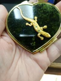 Зеркальце "Сердце" из змеевика с ящерицей цвет золото размером 7х6,5х1,2 см и весом 65 г.