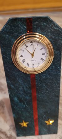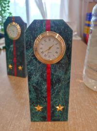 Подарочные часы "Погон лейтенант ВС" камень змеевик размером 6х4х15 см и весом 300 г.
