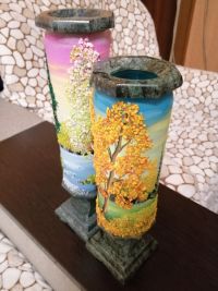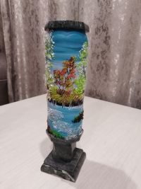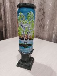 Декоративная ваза "Весенний пейзаж" рисунок из каменной крошки 8х8х29 см размером 8х8х29 см и весом 1100 г.