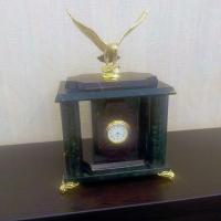 Часы "Орел" камень змеевик бронза размером 18х12х24 см и весом 2900 г.