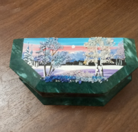 Шкатулка с расписной крышкой "Зимний пейзаж" змеевик 17х7,5х6 см размером 17х7,5х6 см и весом 1000 г.