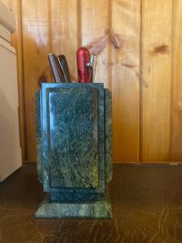 Карандашница с накладками из шабровского змеевика 7х7х10,5 см размером 7х7х10,5 см и весом 680 г.