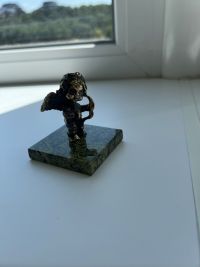 Статуэтка "Ангел с луком" из бронзы и змеевика размером 5х5х6 см и весом 120 г.