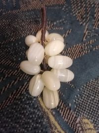 Эта виноградная кисть такая красивая, что я просто влюбилась в нее!! Пришел тот цвет, который я и хотела :светло-зеленый с полосками, очень похож на настоящий виноград :) Виноградинки такие реалистичные! Однозначно рекомендую к покупке! Кстати, веточки, как на фото в карточке товара, нет, но лично мне ее и не надо было.Симпатичная гроздь, может ещё закажу, маленькая.