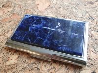 Карманная визитница из камня содалит цвет серебро размером 9,5х6х1 см и весом 90 г.