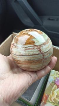 Шар из оникса зелено-коричневый 10 см (4) размером 10х10 см и весом 1620 г.