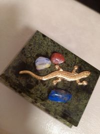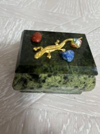 Шкатулка с камешками и ящерицей змеевик 7х5,5х5 см размером 7х5,5х5 см и весом 220 г.
