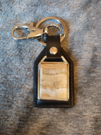 Брелок для ключей с накладкой из оникса размером 4х7х1 см и весом 35 г.