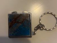 Складное зеркало брелок голубой апатит квадратное размером 3х3,5х1 см и весом 40 г.