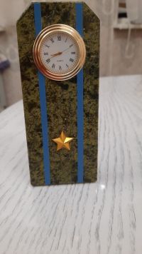 Часы "Погон майор ВВС, ВКС, ВДВ" серпентинит размером 6х4х15 см и весом 300 г.