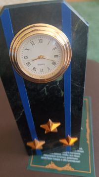Часы "Погон полковник Авиации ВМФ" из змеевика размером 6х4х15 см и весом 300 г.