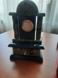 Часы со шкатулкой из натурального змеевика размером 13х9х17 см и весом 1000 г.
