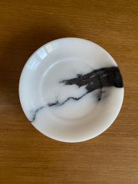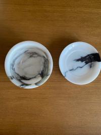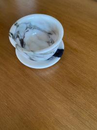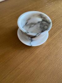 Чайная пиала и блюдце из мрамора размером блюдце 11х11х2 см, пиала 10х10х6 см и весом 455 г.