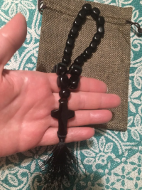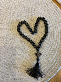 Четки с крестом из черного обсидиана 30 бусин цилиндр размером длина 39 см, диаметр бусины 1 см и весом 80 г.
