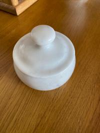 Сахарница из белого мрамора 9х8 см размером 9х9х8 см и весом 610 г.