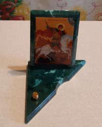 Икона с подсвечником Георгий Победоносец средняя из змеевика 12х12х13 см размером 12х12х13 см и весом 600 г.