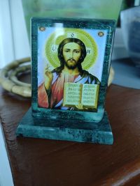 Икона настольная Спаситель малая змеевик 7,5х6,5х8 см размером 7,5х6,5х8 см и весом 200 г.