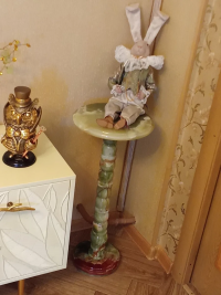 Здравствуйте! Столик из оникса очень-очень понравился ? Нужен был именно такой, именно больше в зелёном цвете, именно такого диаметра столешницы 30 см, и именно такой высоты - 67 см. Предназначение столика - подставка под интерьерную куклу.И просто для красоты) Продавец предварительно , по моей просьбе, выслал мне фото столика, и вообще терпеливо отвечал на мои вопросы) Доехал столик в целости и сохранности.Собрали моментально прямо в пункте выдачи.Отзывы с оценкой