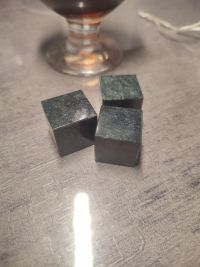 Прекрасные камни. Я специально ходил в метро Алексеевское в Москве, чтобы удостовериться в оригинальности этих камней, там есть отделка на стенах этим камнем (тёмный змеевик) . Так вот спасибо эти камни точно повторяют и цвет и фактуру как в метро. А эта станция была построена в 1958 году. А в то время в СССР про подделку ещё не знали. Камушки в руках приятно звенят и чувствуется приятный холодок. Однозначно друзья покупайте себе или на подарок мужчине. Не знаю как они будут охлаждать виски, а вот как аксессуар для мужчины самое то.Отзывы с оценкой