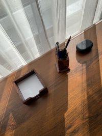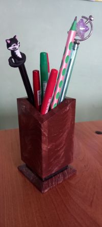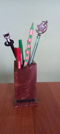 Карандашница из лемезита размером 6х6х11 см и весом 500 г.